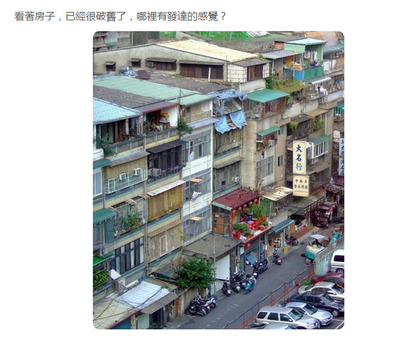 台灣建築常見陽台外推、加裝外推鐵窗、頂樓加蓋的情形,雖然增加自身使用空間,但影響市容美感,常為人所詬病,日前「全球華人聯盟總主頁」臉書專頁分享一篇陸客初訪台灣的感想文,文中寫道,台灣到處都是摩托車、