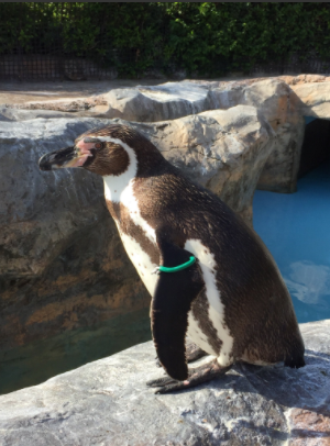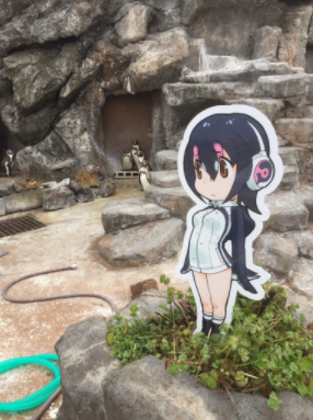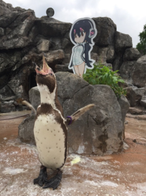 今年4月「葡萄爺爺」終於等到命運般的邂逅,動物園跟動畫《動物朋友》合作,在園區內布置了大量的角色立牌,《動物朋友》將動物擬人化,「芙露露」是企鵝的化身,穿著猶如企鵝黑白花色的服裝,站在企鵝園區內。