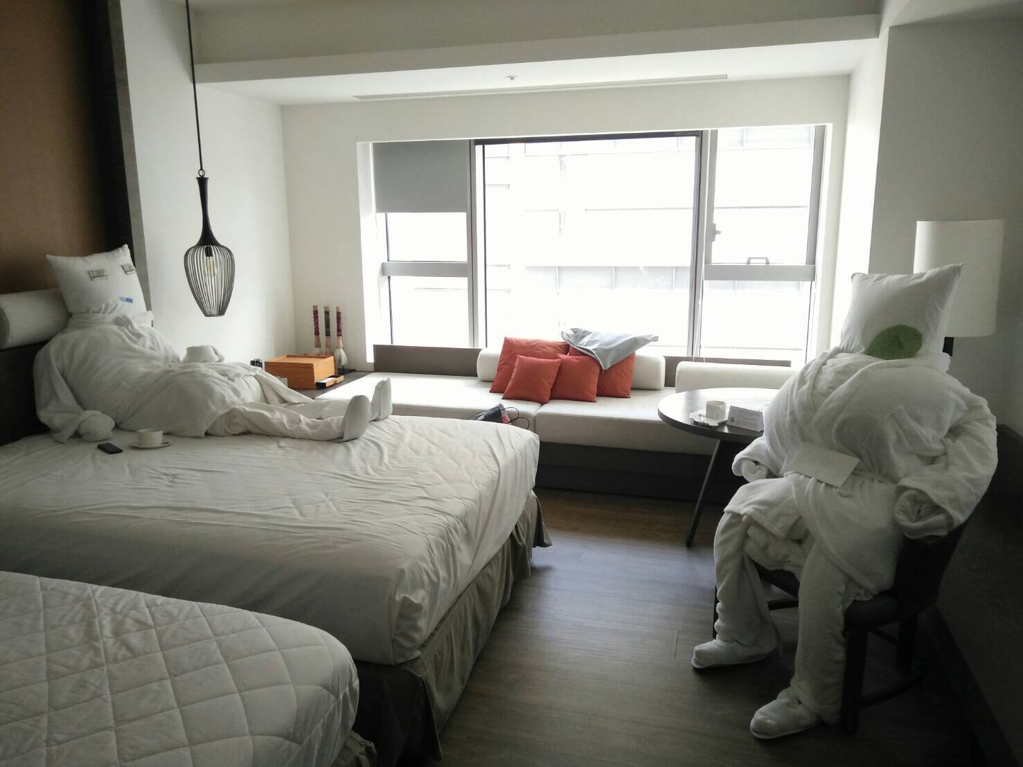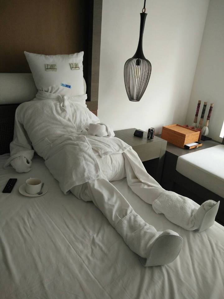 不過,在上星期整理房間的時候,房務人員一開門就驚見2尊白色人影,嚇得全身起雞皮疙瘩,結果上前仔細一看,才發現這些白色