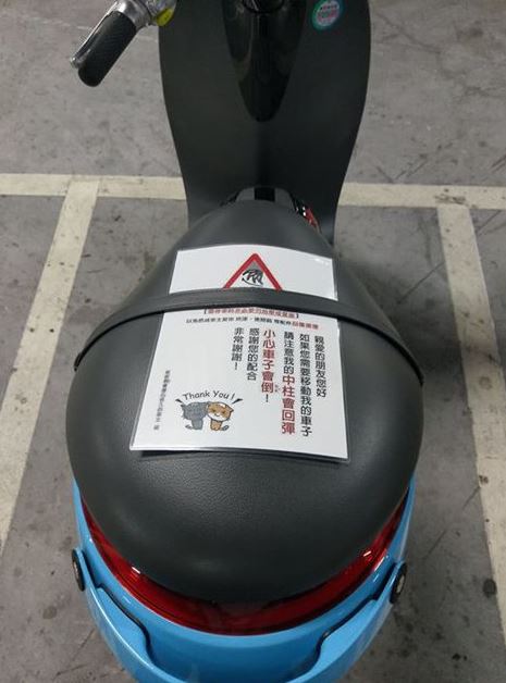 前陣子GOGORO被移車蹭牆傷痕累累,短短8秒就慘賠1.1萬,讓網友紛紛驚嘆GOGORO的維修費居然如此高昂。然而,有網友逛賣場的時候剛好看到一台GOGORO,發現車主居然在坐墊上貼了一張字條,寫說「中柱會回彈,小心車子會倒!」讓其他網友看到後,笑翻直呼「低消1萬起」。