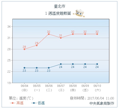 吳德榮提到,滯留鋒及西南氣流週一(5日)皆更加減弱,劇烈降雨的機率又更降低,但仍有局部性短暫陣雨或雷雨。周二到周四(6日至8日)鋒面北移,脫離台灣附近,屆時將轉為多雲時晴天氣,午後有局部性雷陣雨的機率,氣溫則為悶熱型,西半部高溫達34度。他也提醒民眾,由於已有多日、連續性大量降雨,民眾仍應保持警覺,注意災害的後續演變,避免到山區活動。
