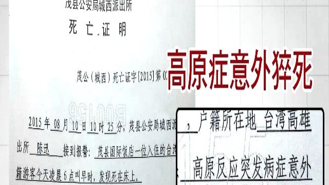 九寨溝黃龍因為風景優美,許多國人都愛去,但高雄一名王先生,和太太八月份去黃龍爬山,隔天凌晨卻在飯店猝死。當地公安開立死亡證明顯示,因為高山症引發的猝死,但保險公司根據法醫鑑定結果,認定是疾病導致死亡因此不理賠,家屬求償無門,決定交由司法決定。