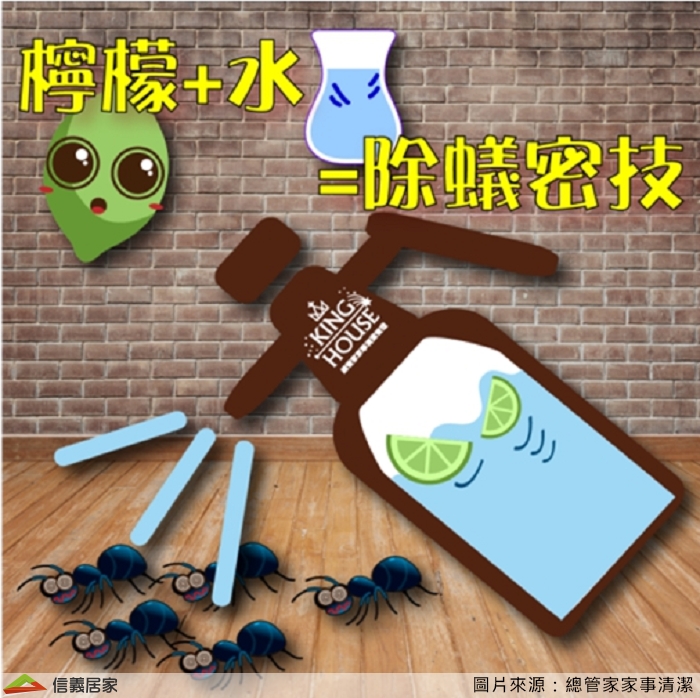 檸檬水不只能喝,還能夠除螞蟻!螞蟻都是倚靠同伴走過留下的氣味行動。將檸檬泡水,灑在螞蟻出沒的途徑及垃圾桶周圍,螞蟻就會因觸覺混亂而搬離家中。