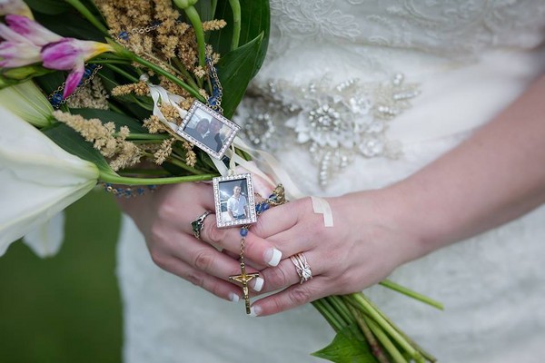 貝琪還在捧花上掛著寶貝兒子的照片,婚禮現場也特地留下一個位置,椅子上也放著紙條「雖然我去天堂了,但是現在妳將要結婚,我會回來看妳的,所以幫我留個位置吧」。