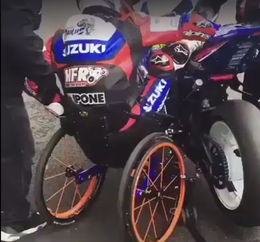 重機騎乘樂趣的車友放眼海內外皆不在少數,日前在國外的重機社團「In The World of Biker」中貼出一段影片,片中一位坐著輪椅的車友,在旁人的攙扶下跨上重型機車,將身體固定在座墊上之後騎進賽道之中,該影片一共有2.6萬多次的分享,看到的網友們都忍不住讚嘆這位