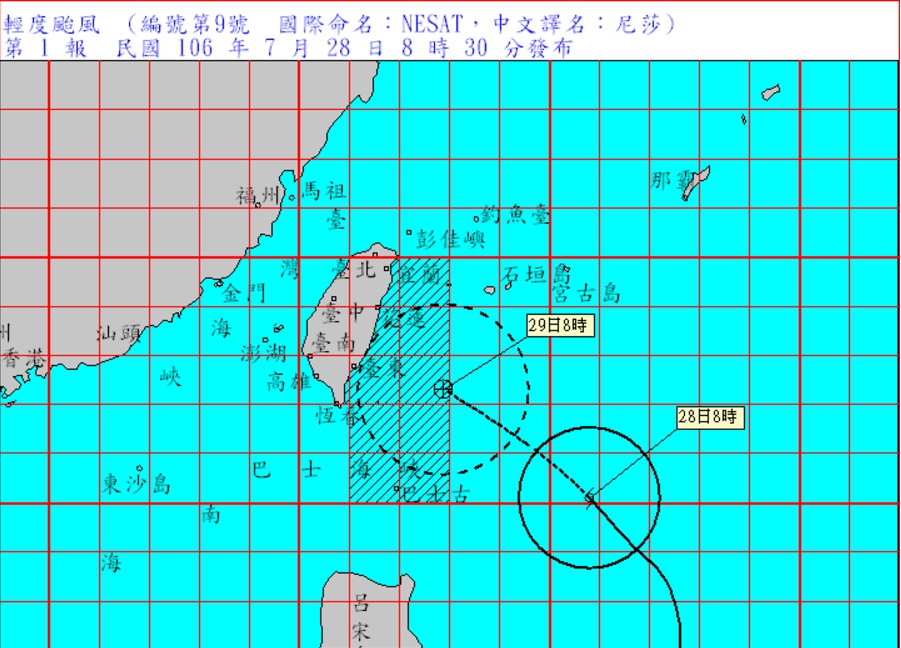 ▼(圖/中央氣象局)氣象局已經在08:30發布了輕颱尼莎海上警報