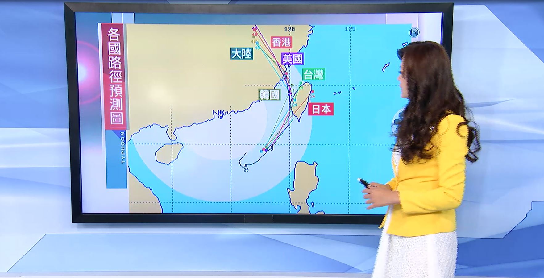 氣象專家王淑麗表示,從中央氣象局目前發布的路徑潛預報圖顯示,海棠颱風登陸後將貫穿整個南台灣,但日本的路徑預測卻顯示,海棠從南台灣登陸後會一路貫穿並從東部出海,而這個路線非常罕見,台灣目前還沒有看過這樣的颱風,其他國家的預測則都顯示會在南台灣擦邊,再從台灣海峽出去。