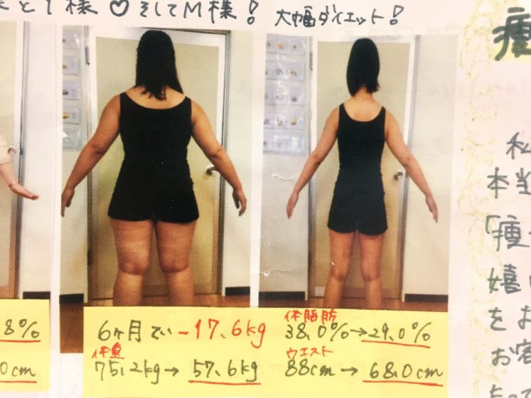 傳單上寫著,這名女子花了6個月的時間瘦了17.6公斤,從75.2公斤變成57.6公斤,體脂肪從38%降低到29%,如此大的成效,卻因為修圖修很大,讓人難以信服。