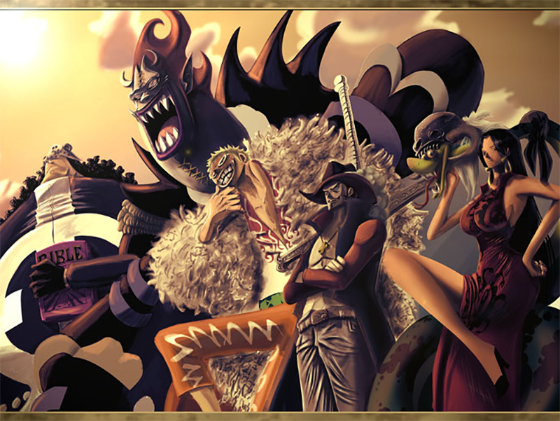 之所以會叫「七武海」也是因為覺得「七」很帥(?),言歸正傳,七武海是整個故事架構中把自由與權力同時掌握的高權勢人物,表面上是中立的,事實上則是被海軍與海賊同時視為敵人的存在,雖然被海賊們稱為「政府的走狗」,但事實上政府也正在找機會隨時將他們除掉,所以七武海們為了達到各自心中的目的絕不會輕易放棄身分,所以與世界政府之間存在相互利用的關係。
