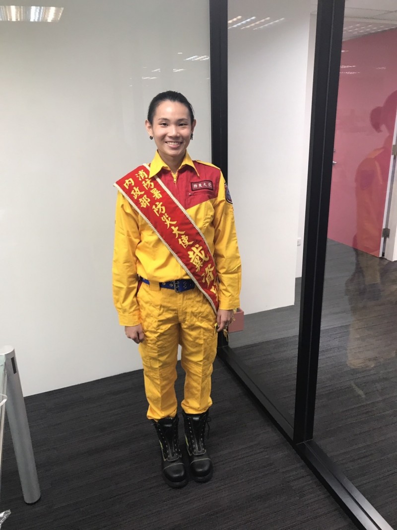 「831台灣英雄大遊行」前,總統蔡英文先在總統府接見我國選手、教練,不過戴資穎最後卻缺席大遊行,然而小戴並非刻意缺席,據了解,戴資穎雙親都在高雄港務消防局服務,行程滿檔的她,公益活動擺第一,早在世大運前就接下消防大使,約好今天拍攝宣傳影片,小戴第一次穿上防災大使衣服覺得相當新鮮,還感性表示:「沒能參加遊行有點可惜,但也算是換個方式幫忙台灣。」