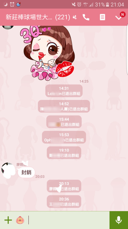 一名世大運志工在Dcard發文,指出志工最後一天紛紛退出群組,但此時他卻看到Line出了一個訊息:「XXX已離開群組」,但他覺得奇怪,認為退出群組應該不會跳出通知,過一段時間後打開群組讓他驚呆了,一名志工阿姨竟然直接照著打「XXX已離開群組」,以為這樣就能退出,但阿姨當然還是留在群組裡面,8小時過後阿姨突然在群組裡回「封銷」,10分鐘後就順利退出群組。