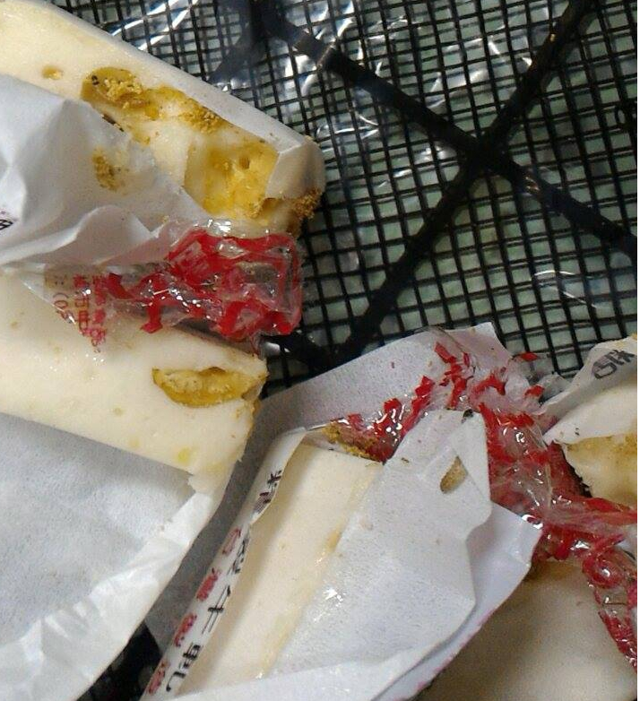 打開牛軋糖可以很明顯的看到小蟲的痕跡。