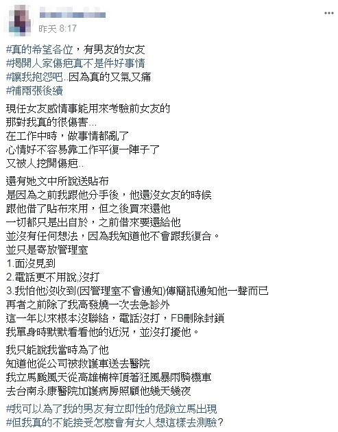 訊息,甚至希望女網友能與前男友復合。
