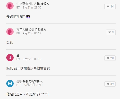 也有網友看廣告寫標語表示,「走過路過不要錯過,錯過看我一眼的機會」、「他泡的是茶,不是妹子」,但似乎有不少人被「擬真」的廣告驚嚇到,「第一次抬頭跟那個人對到眼還嚇了一跳」、「第一次看到的時候正在講電話,害我直接對電話罵髒話」。