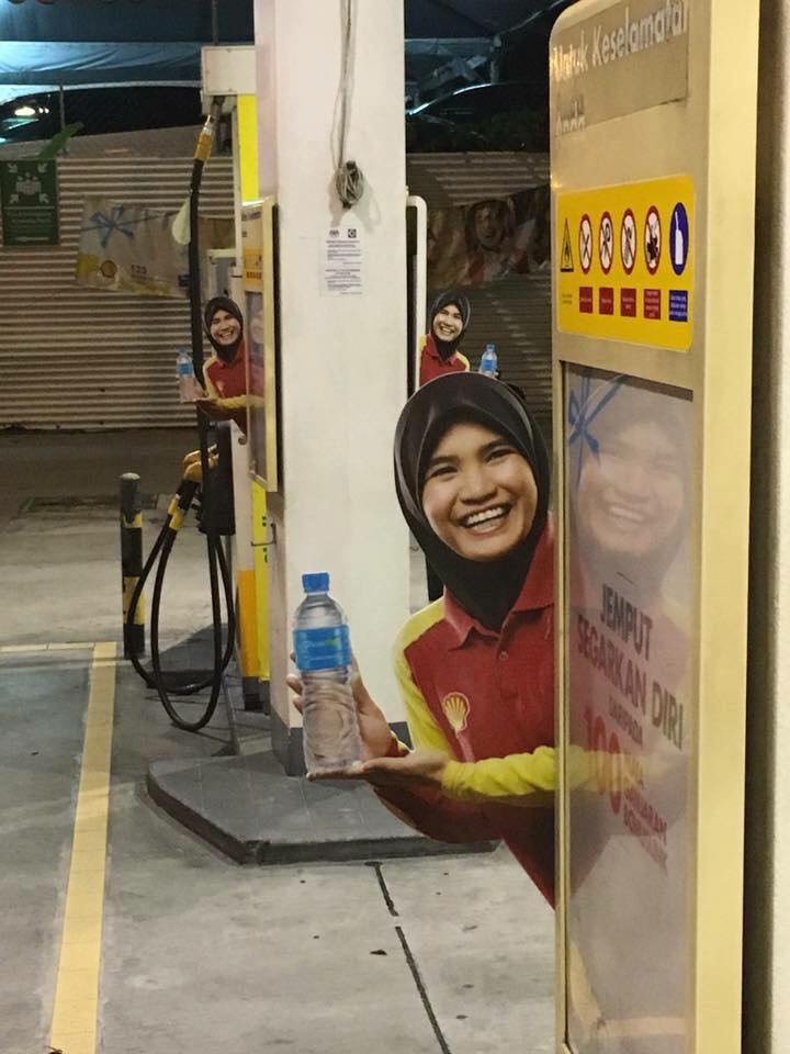 ▼ 馬來西亞加油站的擬真廣告文宣。(圖/翻攝自《