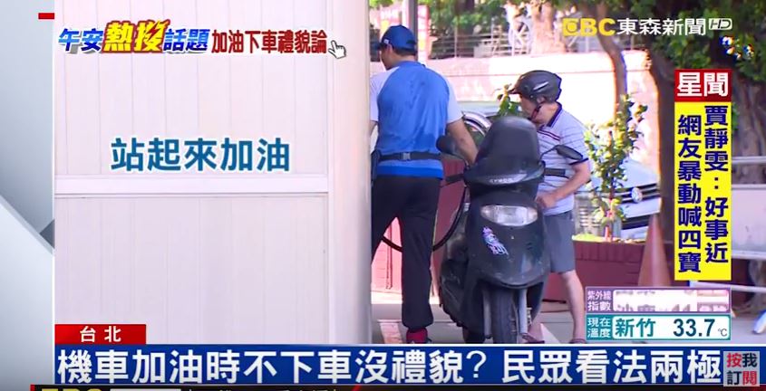 他在「批踢踢」PO文,說明有一次他載女友出門,剛好需要加油,當他騎到加油站之後,便很自然的打開機車左前方的油箱蓋,然後坐在機車上讓工作人員加油,想不到當他們加完油離開後,女友竟然不悅的質問他,「為什麼沒有起身讓工作人員加油?」認為坐在機車上對加油站員工不夠尊重。