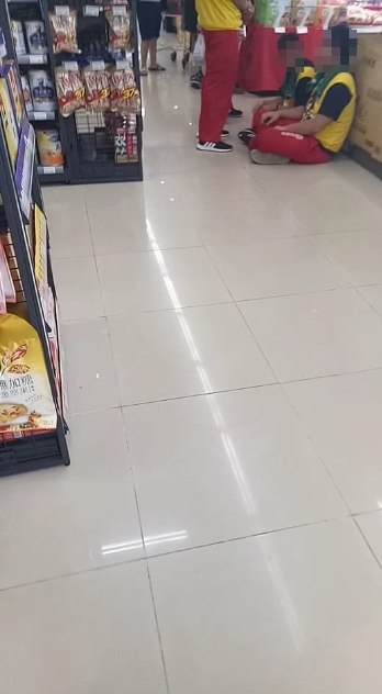 賣場內,有一群人席地而坐,悠哉滑著手機,甚至有人躺在地板上,疑似在閉目養神,還有人靠在陳列商品的冰箱前,享受陣陣涼意,爆料網友批評,「難道這就是台灣人的