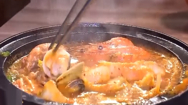 超豐富好料還有這一鍋海陸極品鍋,牛肉加入高湯後,再放進草蝦、干貝、鯛魚片一同滾煮,所有海鮮都吸附了獨家特調的香辣泡菜,讓滋味更加鮮美草蝦肉質緊實,Q彈飽滿,白嫩的鯛魚片也帶有韓式料理特有的溫潤辣味,牛肉更是充滿滑嫩口感讓人意猶未竟。火烤兩吃的吃法讓你同時能吃到燒肉與火鍋份量超飽足,再加上白飯、飲料通通無限量供應,因此用餐時間吸引滿滿人潮,平均一天就能賣出200鍋月營業額突破150萬。結合火鍋和燒烤的用餐方式百分之百大份量顧客說CP值超高店裡更歡迎大胃王來挑戰。