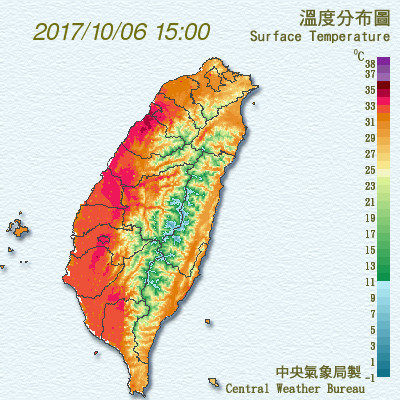 氣象局說,這幾天大台北地區及東半部高溫略降約30至32度,桃園以南仍有33至35度,各地低溫約24到26度。