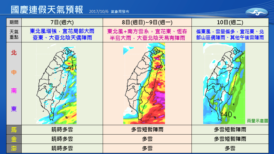 ▼國慶連假天氣預報(圖/中央氣象局提供)