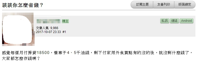 mobile01」發問,每個月光付房貸、繳車油錢就是一大筆開銷,剩下的錢拿來支付家用後就幾乎花光,究竟該如何存錢?許多網友看了都在留言大方分享自己的理財「撇步」。