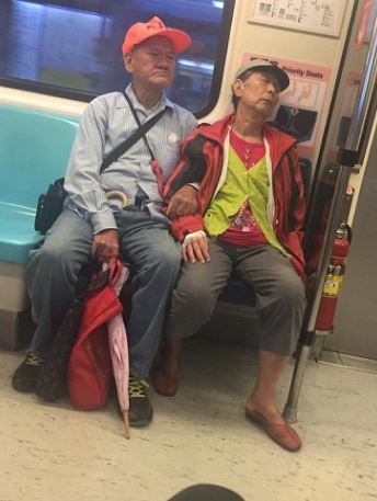在捷運瞥見的這一幕令人暖心!一名網友在捷運上看到一對老夫妻,老奶奶頭靠車廂已經沉沉睡去,一旁的老爺爺疑似怕老奶奶著涼,伸出顫抖的雙手,幫老奶奶扣上釦子,畫面相當有愛,讓看到的網友相當感動,拍下影片直說,「這一幕…很甜」。