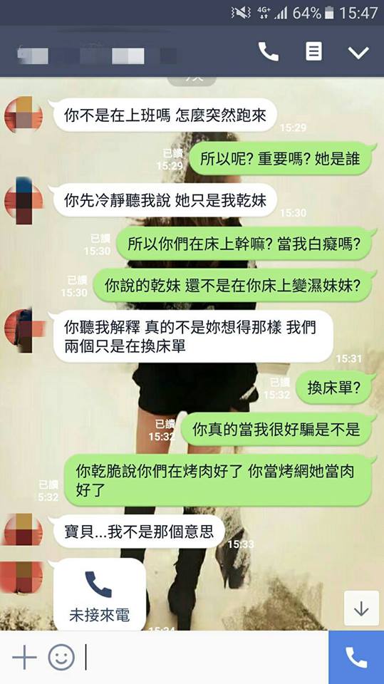 男友偷吃被抓包仍辯稱女子「只是我乾妹」、「我們兩個只是在換床單!」讓女網友怒嗆,「你真的當我很好騙是不是?你乾脆說你們在