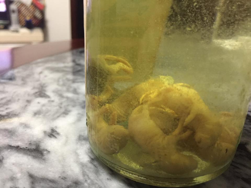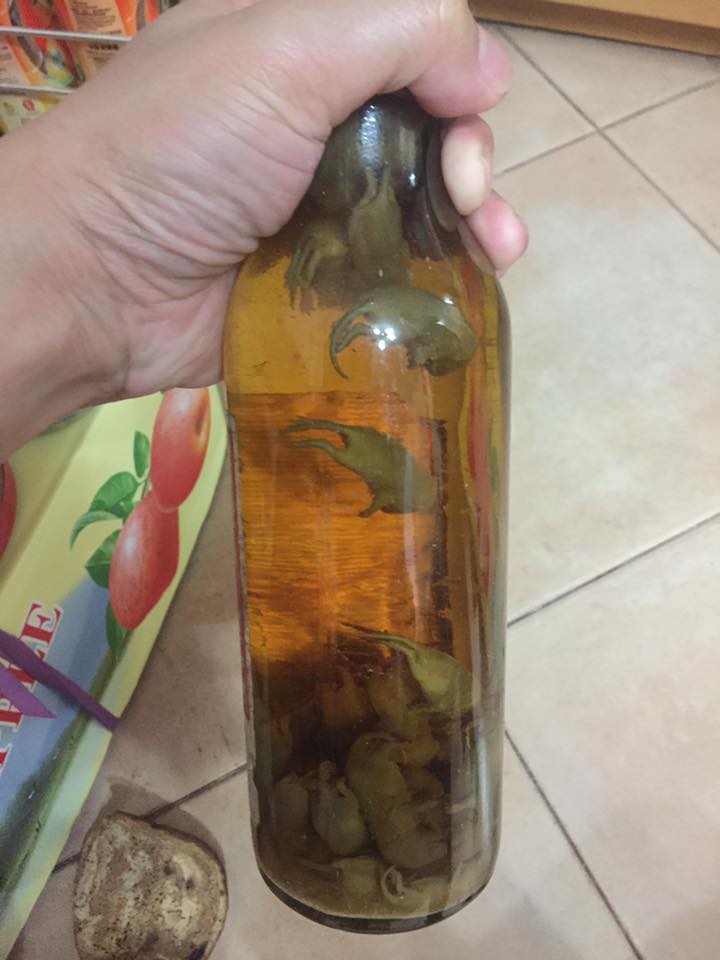 現代人如果想要補身子或是生病、身體出狀況,通常都會去醫院讓醫生來評斷,但是老一輩的人容易聽信民間的偏方,所以很多阿公、阿嬤都會在家裡私藏各種藥酒。最近就有網友在家裡長輩的床底下找到一瓶「慘白小動物泡的藥酒」,沒想到拿起來仔細一看,裡面裝的竟然是未開眼的幼鼠!