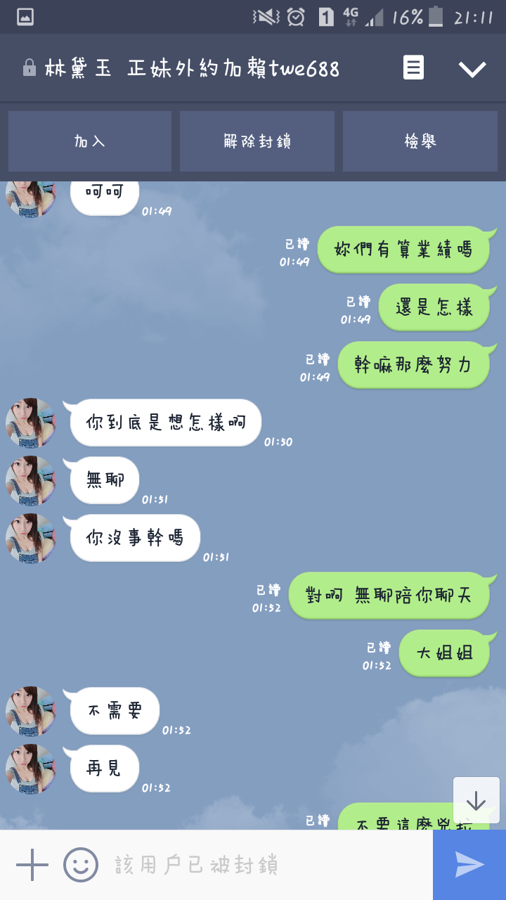 Dcard》上PO文表示,平常他和室友無所事事時,為了尋找樂子、打發時間,會特地跑去加「援交妹」的line,多半他遇過的援交妹都能無話不談,不過他日前卻遇上一位援交妹,一開頭就超嗆回覆,隨即又被原PO的問題惹怒,砲轟原PO將近9分鐘!
