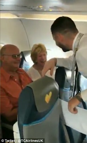 這突如其來的廣播,讓伍洛斯的父母驚喜不已,完全不知道原來自己搭了寶貝兒子駕駛的飛機,伍洛斯接著說「要是他們當年沒有相遇,現在我也不會出現在這。」就走向坐在第17排的父母,給了一又大又溫暖的擁抱,讓一旁乘客看了淚眼汪汪,為眼前這溫馨的畫面鼓掌歡呼。