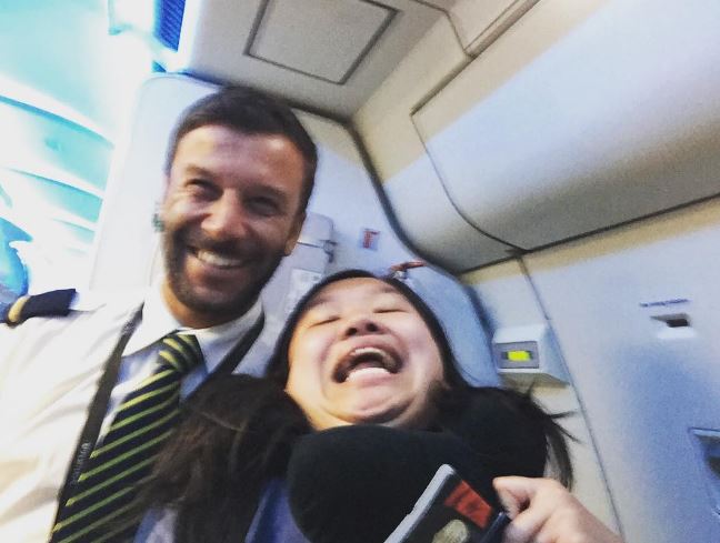 ▼蜜雪兒與機長拍照,機長笑得合不攏嘴(圖/翻攝自 chinventures ig)