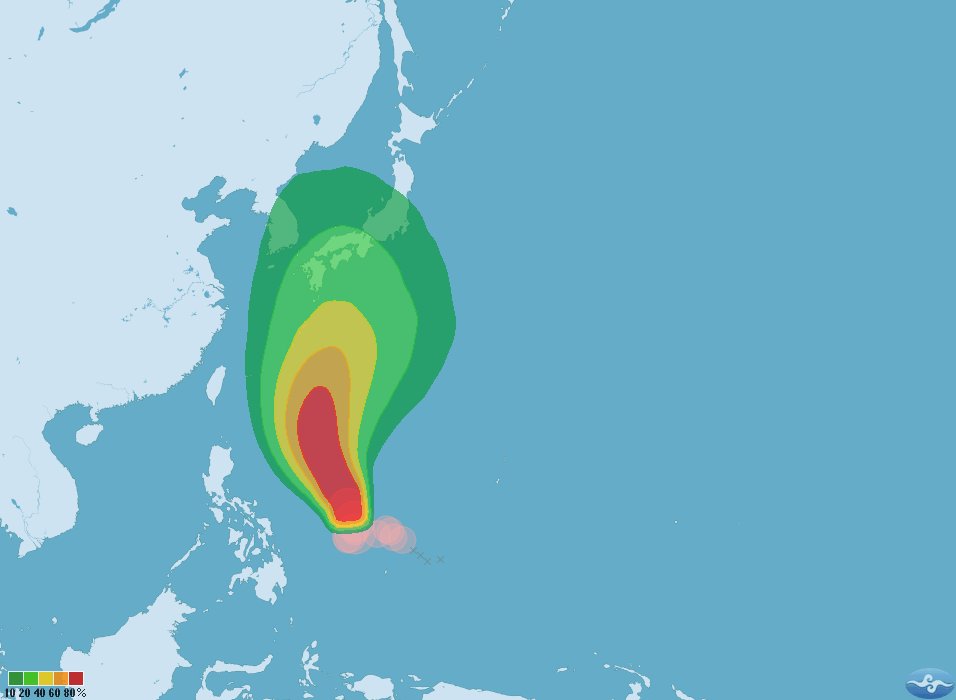 ▼蘭恩暴風圈侵襲機率。(圖/中央氣象局)