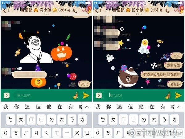 ▼LINE 26日起輸入指定關鍵字,就能觸發萬聖節特效。圖/Line
