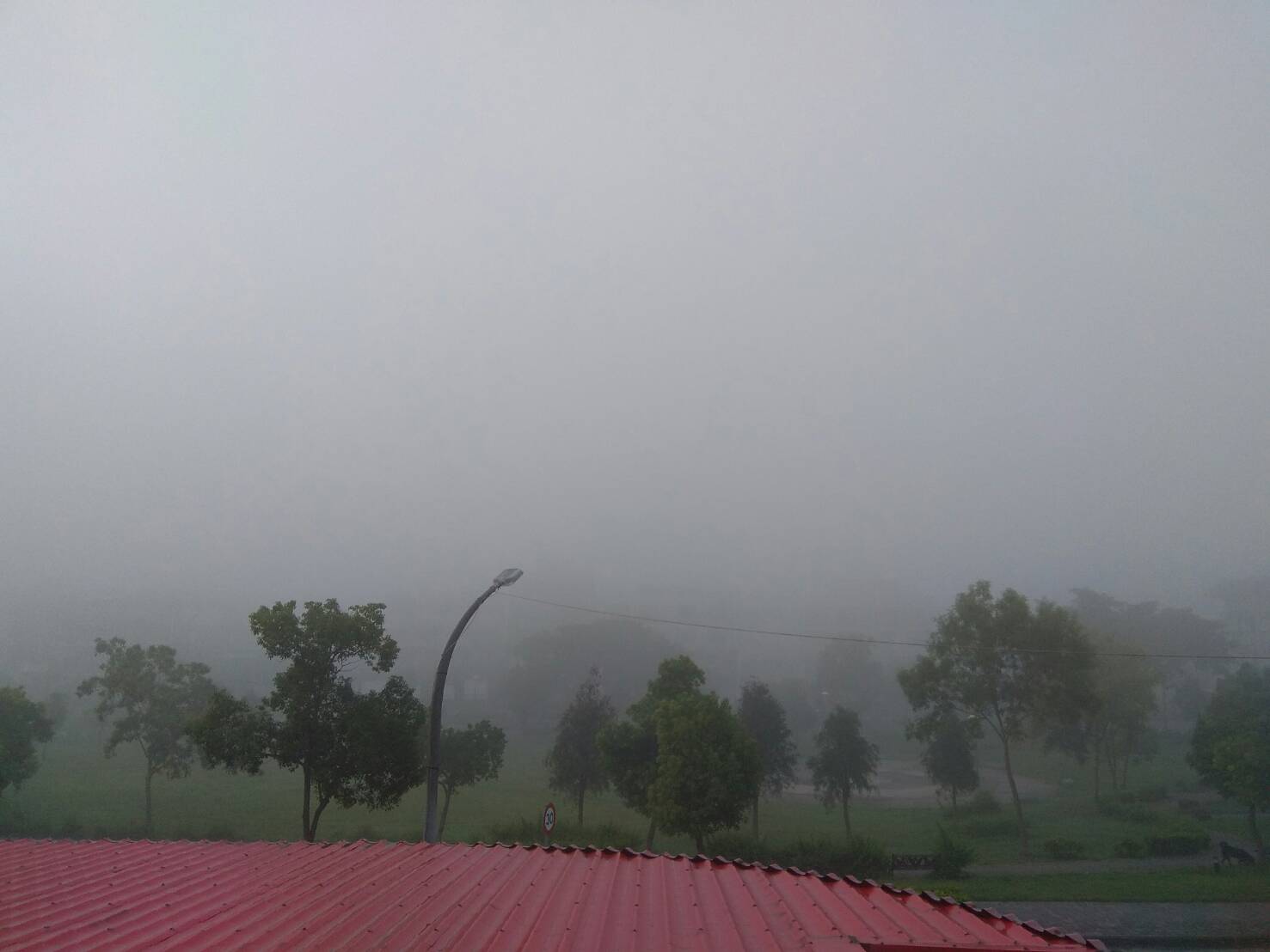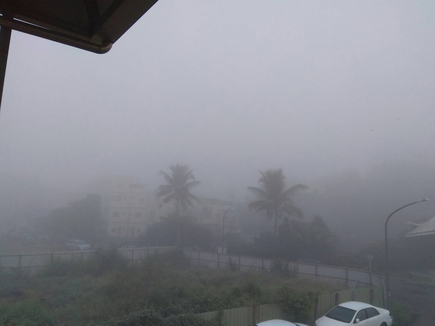 霧茫茫一片,讓他驚嘆「讓我嚇到吃腳腳!」貼文也釣出不少中南部的網友哀鴻遍野。