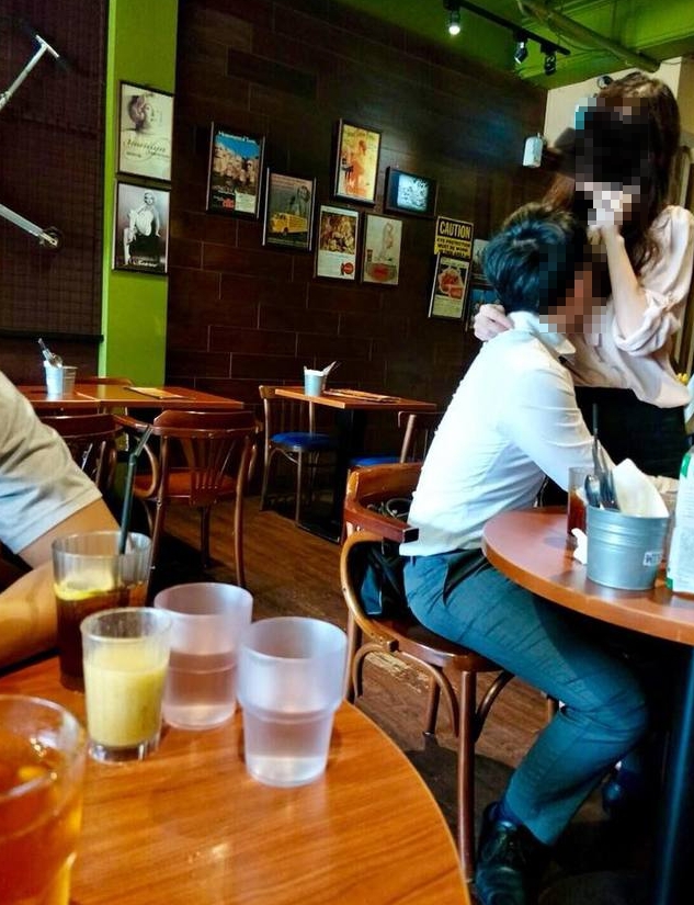 早餐時,發現隔壁一對男女在大庭廣眾之下黏在一起「