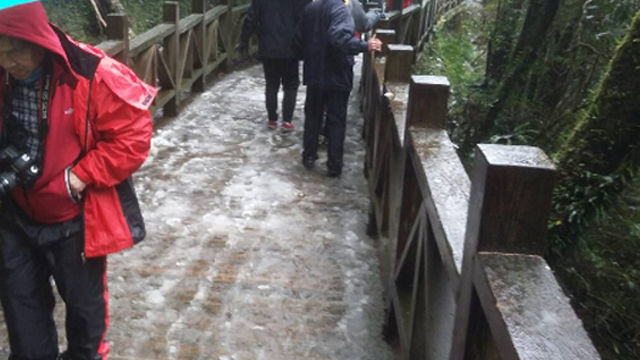 太平山與拉拉山今早降下冰霰。冰霰常發生在溫度0度時,為雪狀結構的白色不透明冰粒,形狀不是六角形,通常為圓形,大小約為5毫米。在下雪前或下雪的時候會出現,與雪相比質地較為鬆散,重量較雪重,落到地上會彈起來,容易碎掉。