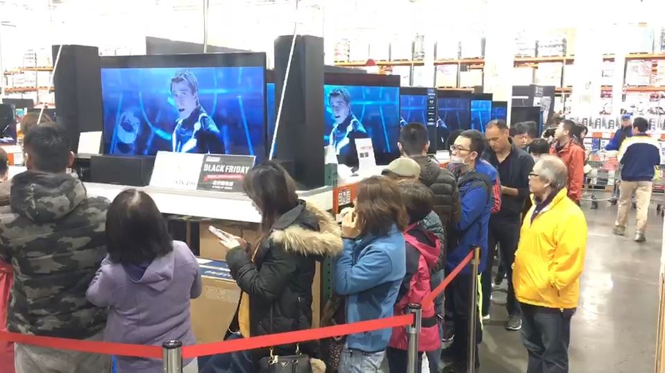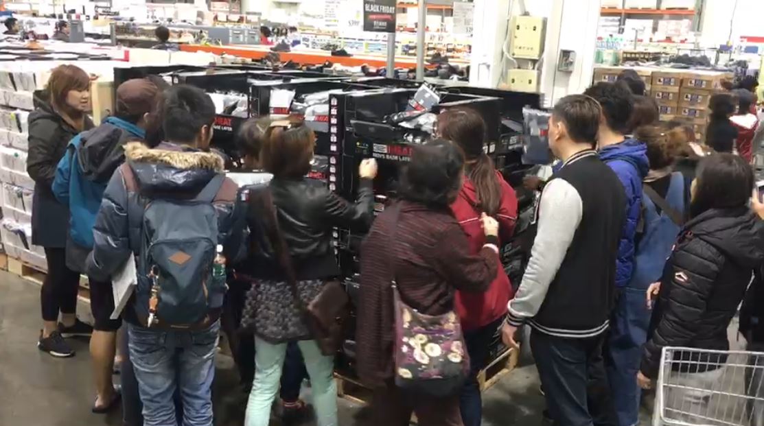 美式賣場好市多首度引進美國「黑色星期五」購物節,今天(24日)登場,在24日到26日之間推出破盤優惠折扣,各賣場特別提前一個小時營業,在開門前就已經大排長龍。而現場推出電視買一送一的優惠,不少人都在旁觀望,不過有人進去半小時就買完,覺得有些失望。