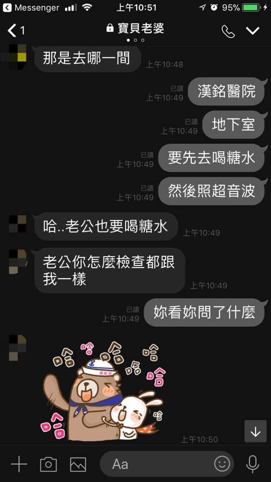 這段「和老婆的日常對話」貼出後,逗得不少網友哈哈哈大笑,「太可愛了你們」、「產檢體檢差很多」、「好一個老公將錯就錯」、「我還在想為什麼老公要產檢= =」、「笑到肚子痛」、「祝你順產,打算剖腹還自然產?」,但也有人看出其中的奧妙,「這老公是真心關心著老婆跟肚子裡的小孩,所以產檢要做哪些都清楚,人家都說懷孕會變笨,老公別笑老婆了喔!」