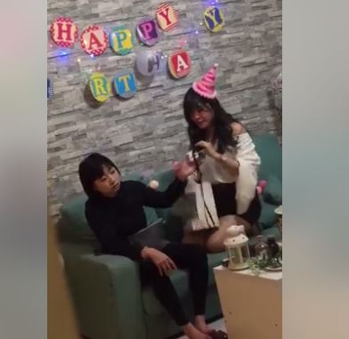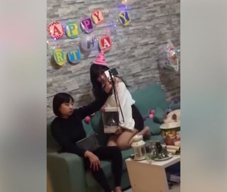 這名網友在臉書「爆廢公社」貼出一段影片,畫面女子似乎在慶生,牆壁上貼著「Happy Birthday(生日快樂)」的英文字,帶著派對帽的捲髮女子雙手拿著禮物,嘴角漾出甜美笑容不停變換姿勢,十分享受。