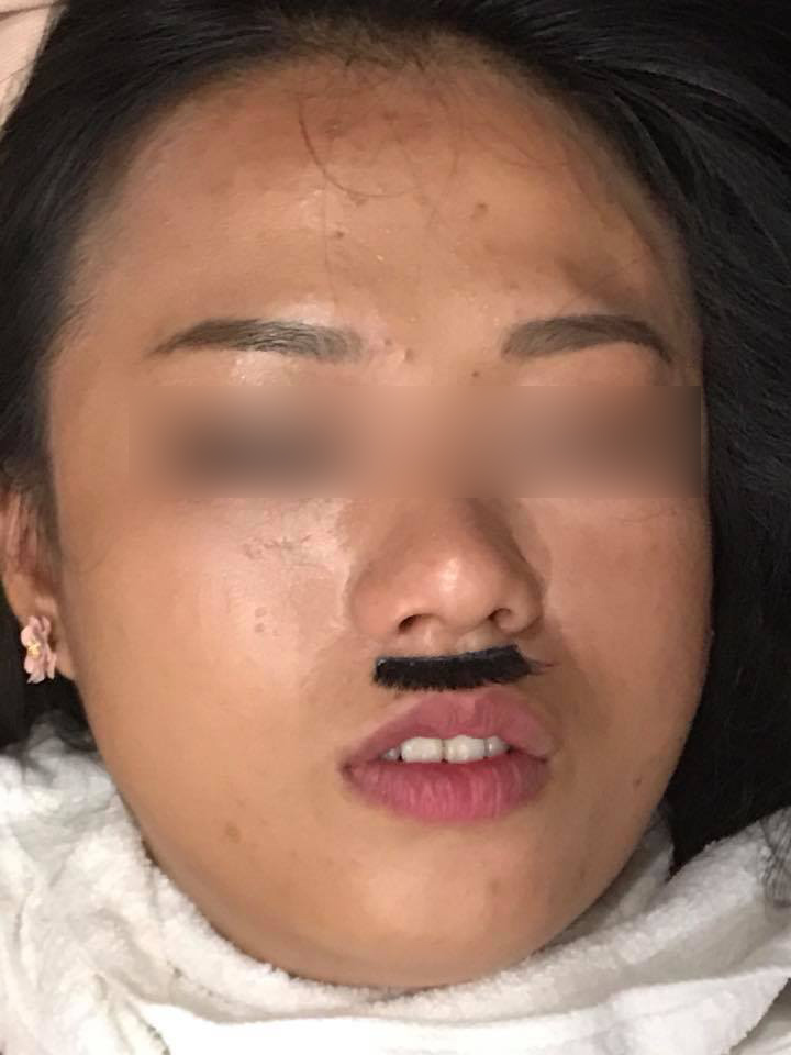 但你以為這些爆料很狠了嗎?不!原PO最後放出大絕招,除了公布「閨蜜」的臉書照片外,為了讓大家能夠「認清」此人的真面目,隨文附上對方昏睡的「脫妝照」,不僅妝沒卸,假睫毛還掉了一邊,同時放在人中的地方,網友看了差點沒笑破肚皮,「睫毛有看過,植鼻毛第一次看到,塵霾真的太嚴重了,這議題需要擴大檢討,納入健保」。