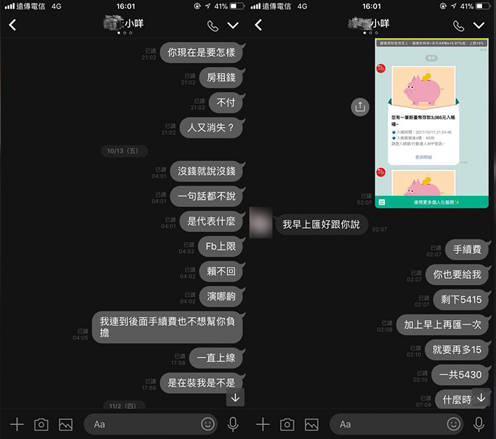 原PO在「爆料公社」上氣沖沖地發文表示,自己有個朋友剛開始哭著說沒錢租房子、過生活,原PO好心借衣服給她穿,還用自己的名字租房子,並溝通好按月付房租,如果有困難,原PO也可以幫忙分攤一半,沒想到合約一簽下去後,就是惡夢的開始,因為該女子不僅沒付租金,連水電、瓦斯費都不繳,最後甚至消失一個月找不到人。再度出現時,只付了3085元,原PO怒罵「一個月18500,你付3085?請問這是在付什麼意思的」。