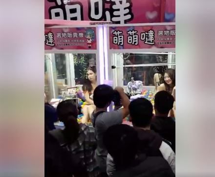 辣妹坐鎮,吸引許多人試玩、搶拍,也有不少網友在直播影片留言,「那妹子保夾要多少」、「真人可以抓嗎」、「好辛苦,今天很冷欸」、「保夾女生可以帶回家嗎?不能我先報警了」,原來這是店家開幕祭出的活動,雖然出奇招的確吸引許多人上門,但也有人批評,「這樣是為了什麼」、「真的是病了」。