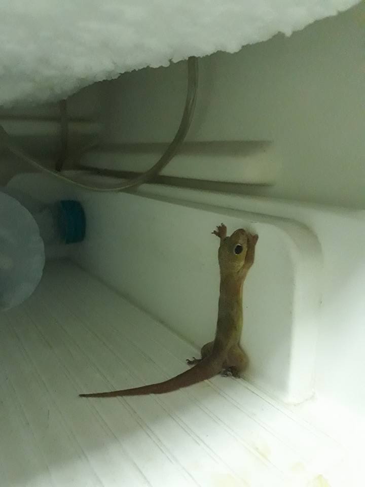 涼到升天!不敵高溫40度 小壁虎躲冰箱避暑慘凍死