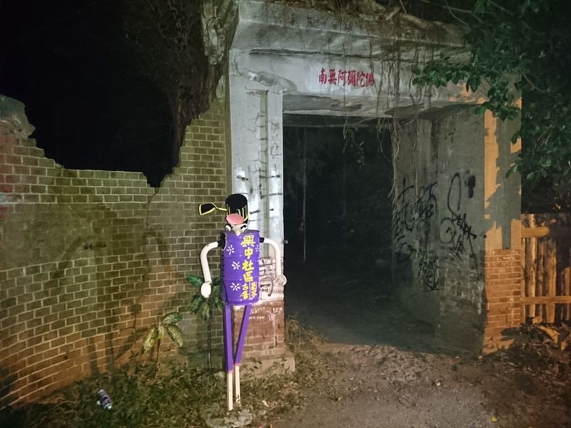 ▼民雄鬼屋入口處還被人用紅漆寫上「南無阿彌陀佛」(圖/翻攝自《Dcard》)