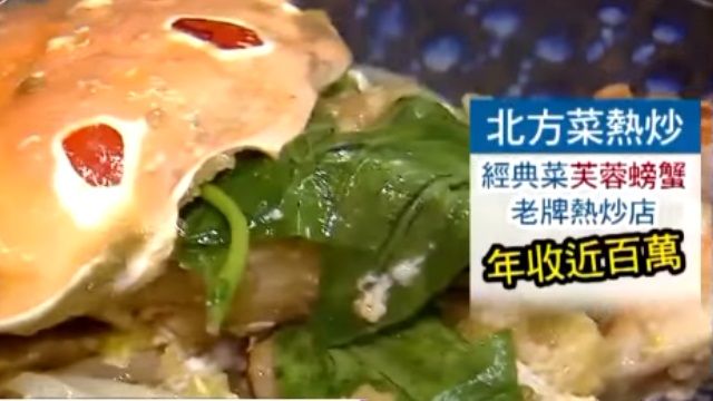 老闆「阿霖」在砧板上快刀壓碎蟹殼,利落的切開蟹腳,粿粉後的螃蟹丟進高溫油鍋滋滋聲響,彷彿在告訴大家螃蟹有多鮮美。熱炒店老闆阿霖:「它這裡有一層膜,如果鼓鼓脹脹的,那個表示這隻螃蟹好,這個地方如果硬的話也比較成熟。」青椒、洋蔥、紅蘿蔔、蛋液,裹著炸的酥脆的螃蟹,這是經典北方菜芙蓉蟹,靠招牌菜老字號熱炒店,年營收上看百萬元。客人:「早期在擺攤子的時候,路邊攤就吃過大概十多年了。」老饕一吃成主顧,今年47歲的老闆阿霖,17歲入行一做就是三十個年頭,從路邊攤做起也磨出一套做菜哲學。