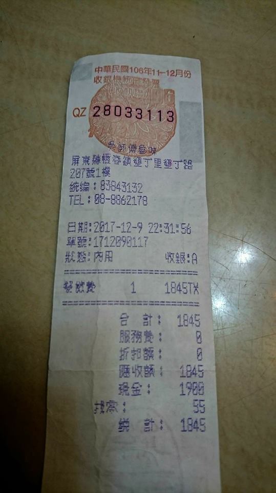 ▼網友PO出發票佐證,兩盤共1845元。(圖/翻攝自當事人臉書)