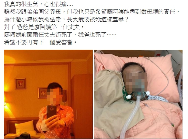 種種一切,令原PO感到十分憤怒及傷心,不明白為什麼小時候她被迫離開爸爸到了新的家庭,長大後卻又要被羞辱。文末,原PO表示,「爸爸是廖阿姨的第三任丈夫,前面兩任丈夫都死了,我爸也死了…希望不要再有下一個受害者。」