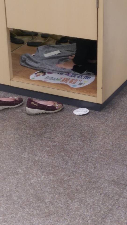 一名網友稍早在某間流行服飾館,目睹年輕女生脫鞋進更衣間
