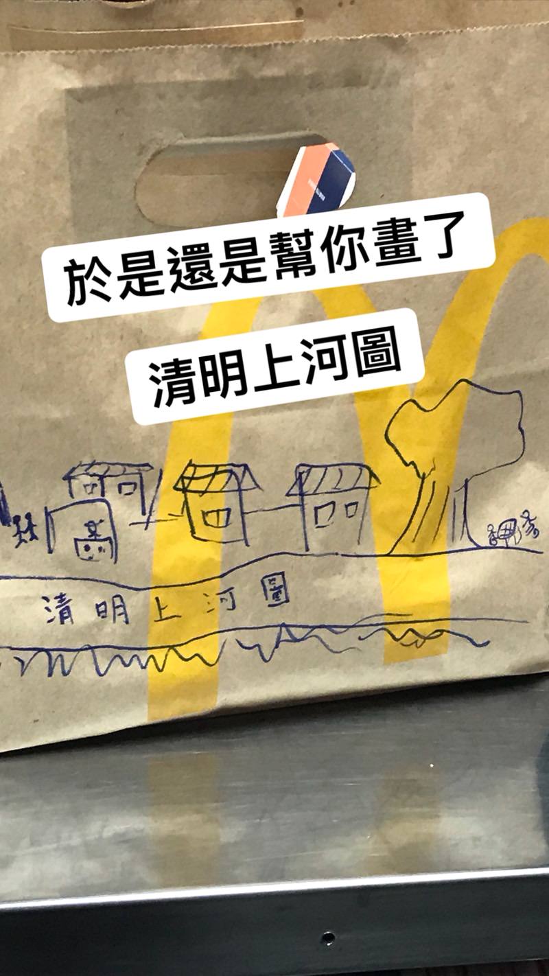 日前一名網友在Dcard分享,有客人用APP訂摩斯漢堡時,在備註欄寫下「紅茶麻煩都去冰,可以幫我在袋子上畫一隻傑尼龜嗎?」雖然要求令人傻眼,但不少店員表示「不覺得是奧客」,反而覺得是工作上的樂趣,令人會心一笑。甚至有人要求畫「清明上河圖」,店員也真的畫出來,雖然網友PO文時都提醒,不要造成外送員困擾,卻還是引起一股畫圖風潮。