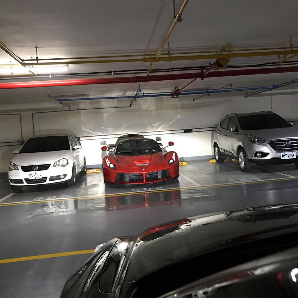 法拉利頂級超跑「馬王」LaFerrari,全球限量499台,一台價值破億元,是最頂尖、極致的夢幻車款。日前有民眾發現一輛「馬王」LaFerrari,竟然就停在自家停車場內,讓他忍不住拍下來PO網分享,而大家也發現,旁邊的車主似乎相當識貨,停車時都躲得遠遠的,就怕一個不小心會碰傷它。